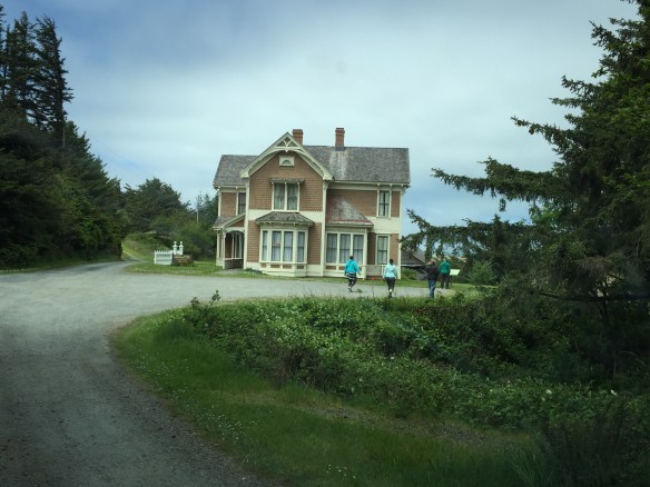 We’ve been told by all the guides that Fresnel lenses came in six grades. Grade 1 lenses were the biggest, over seven feet tall and over 2000 lbs each. The lens in the Cape Blanco Lighthouse is an unusual Grade 2E manufactured by Henry-Lepaute in Paris in the mid 1860s and first lit in 1870. Our guide didn’t explain what the “E” stood for, just that this lens is larger than a Grade 2 but smaller than a Grade 1.
