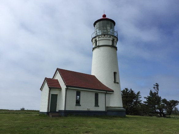 Cape Blanco, named by the Spanish for its 200-ft white cliffs, is Oregon’s most western point and one of the windiest. The lighthouse there was nearly closed to those of us who visited on Saturday because the wind speed nearly topped 50 mph. It was still a challenge opening and shutting doors when I arrived yesterday, Sunday.