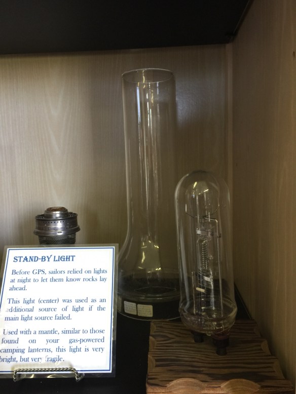 Displays in the workroom gave us a firsthand look at the oil containers and the hurricane glass toppers. (The display in a previous lighthouse only showed a photo of one.)
