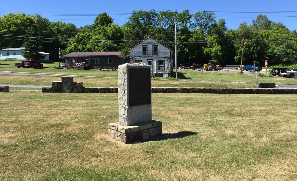 Heading from the fort toward the town of Ticonderoga, just after crossing Route 22,  I found Marker No. 3 on the left (south) side of the street amongst a triangle of monuments.