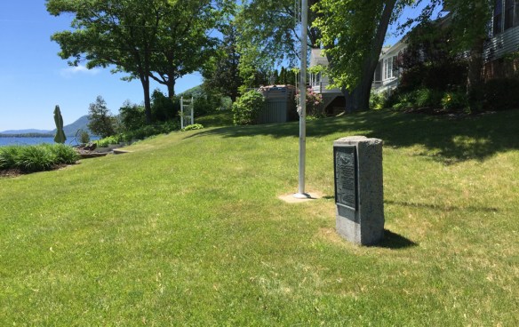 Searching for the markers for the Henry Knox Trail reminds me of geocaching. Marker No. 5 was especially difficult to find because it is on private property in the backyard of someone’s home overlooking Lake George. We had to trespass to reach it.