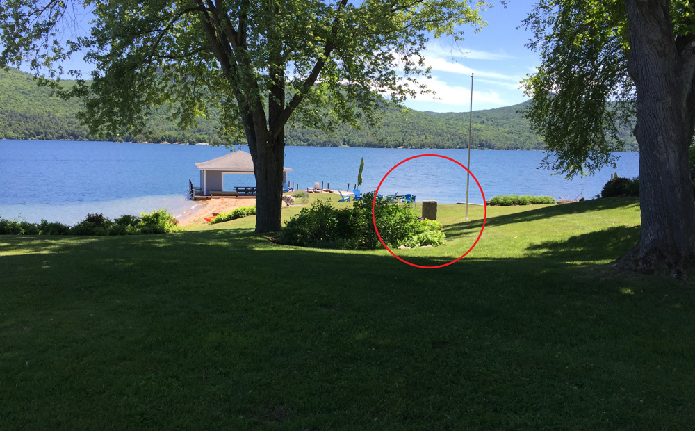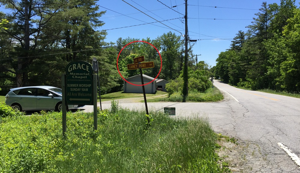This map is the result of a lot of walking around Sabbath Day Village and asking people where the marker was. Not a soul had heard of it, not even a woman who had been spending summers in the village her whole life. An elderly resident figured out it had to be at the end of the point which was the back lawn of the residents who lived there. He pointed to this point.